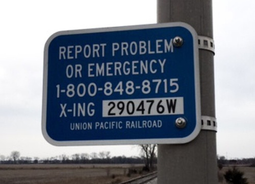 If something appears unsafe, it should be reported. Every railroad crossing in the United States currently has a blue Emergency Notification System sign that lists a phone number and crossing identification number. Calling that number connects directly to the railroad so crews can be alerted immediately. Local emergency services can also relay reports to the railroad.